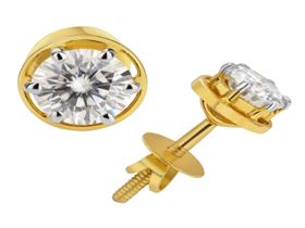 Eearing with 14 K Gold 2 carat Moissanite