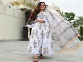 WHITE GOLD GREY COTTON SUIT SET ? 3,500.00 ? 2,100.00 -40% inclusive of all taxes Size : XS, S Add a pinch of grace to your day with our newly launched white cotton suit set! The bell-sleeves and the dupatta absolutely go hand in hand.