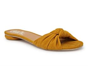 Slip-on style sandals with a knotted bow detailing on top in canary yellow color Made with super-soft padded lining with a comfy and durable rubber sole.