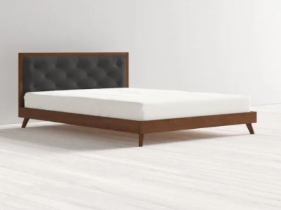 Brown modern wooden double bed without storage