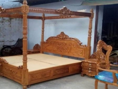 King Size Teak Wood Nrw Carved Four Poster Double Bed in Kantabanji