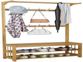 Floor-standing foyer solid wood coat rack, natural bamboo material, clear texture, sturdy and durable.