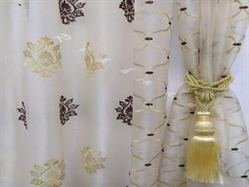 Superior Tissue Sheer Voile Curtains with 1 Piece of beautiful Golden Tie Back, Coffee and Golden Silky Thread Work Embroidery on GOLDEN BASE Colour fabric. Material: Tissue Sheer Voile (Looks Amazingly Superb in BedRooms and Living Area)